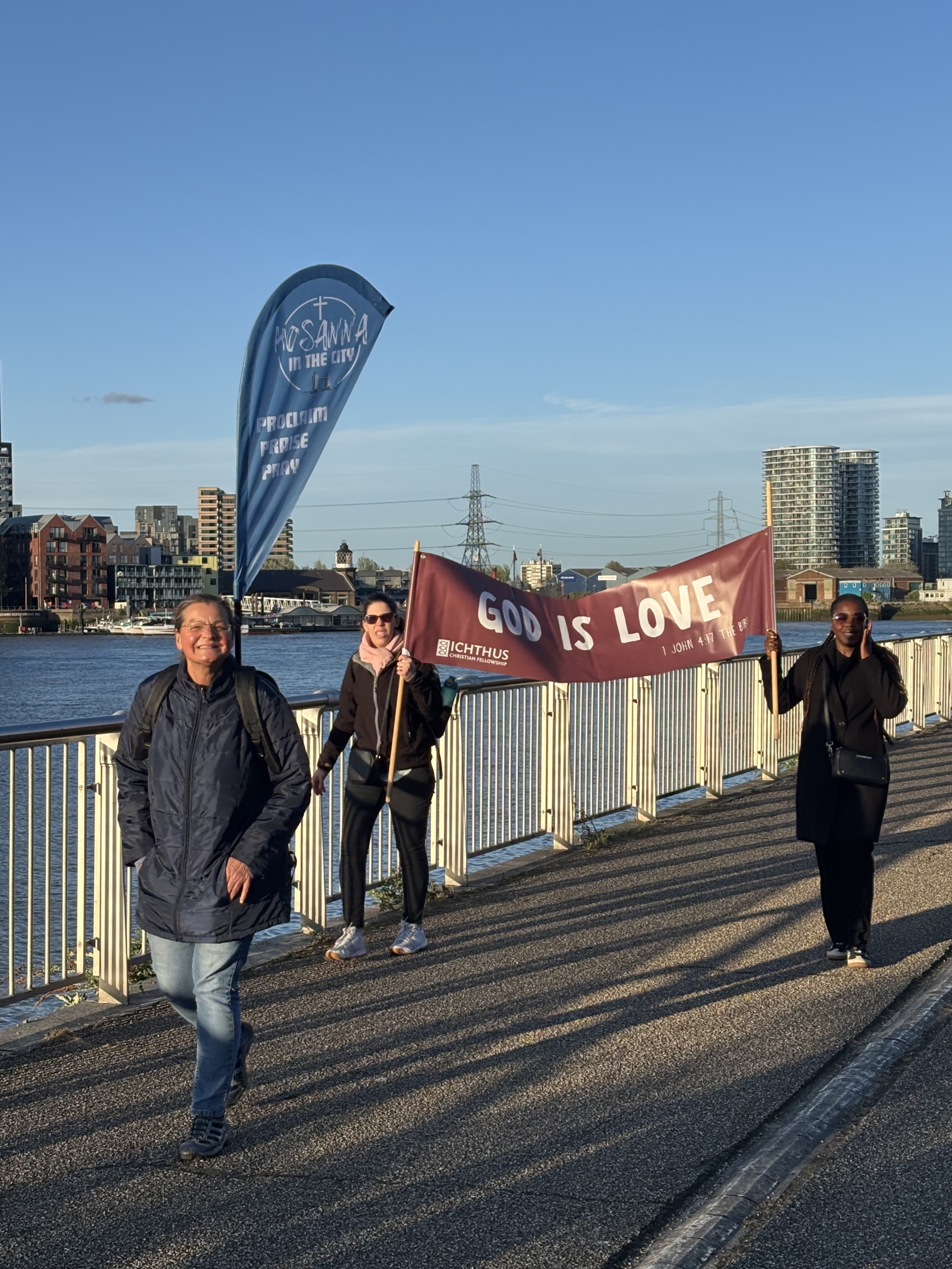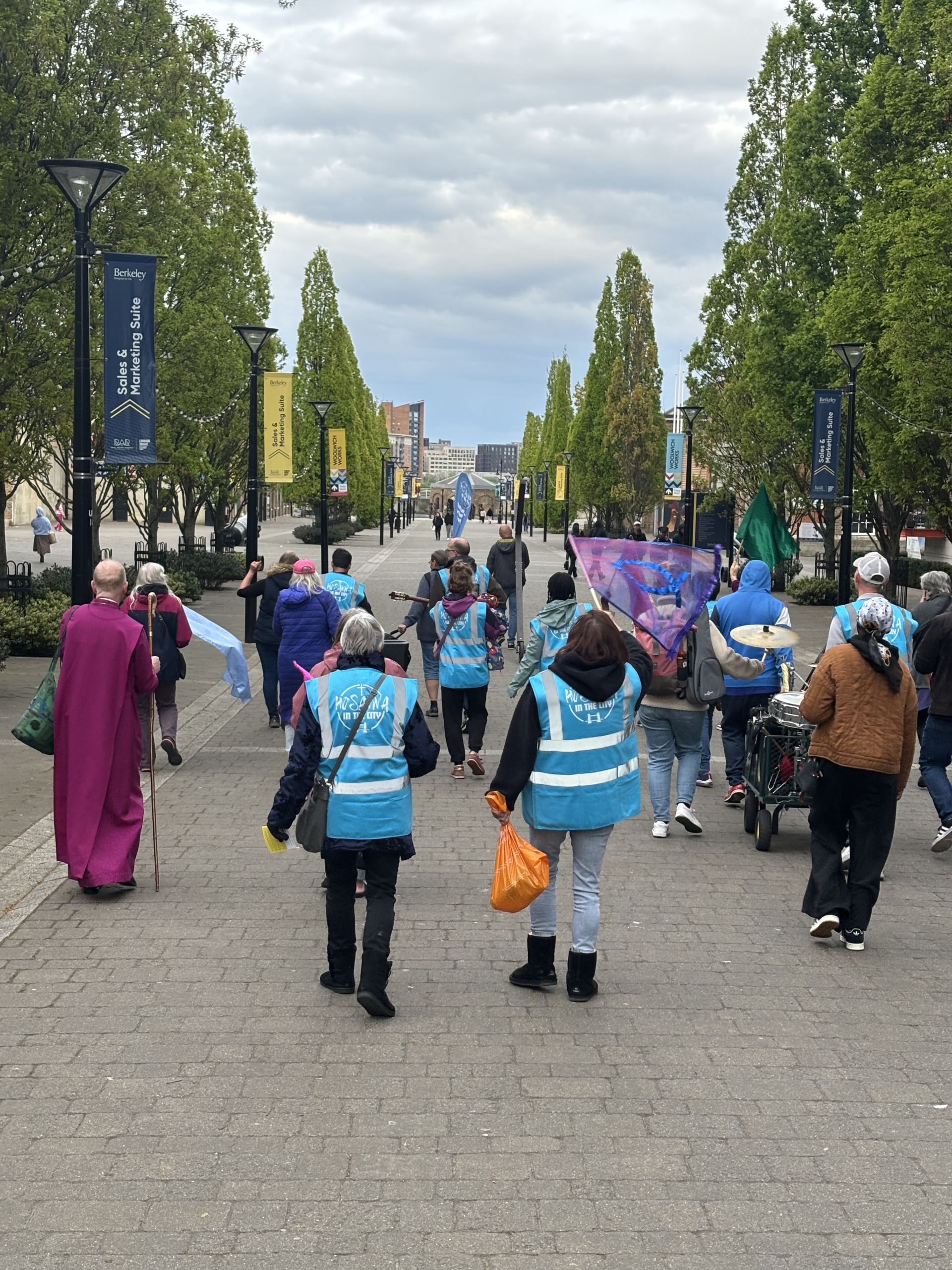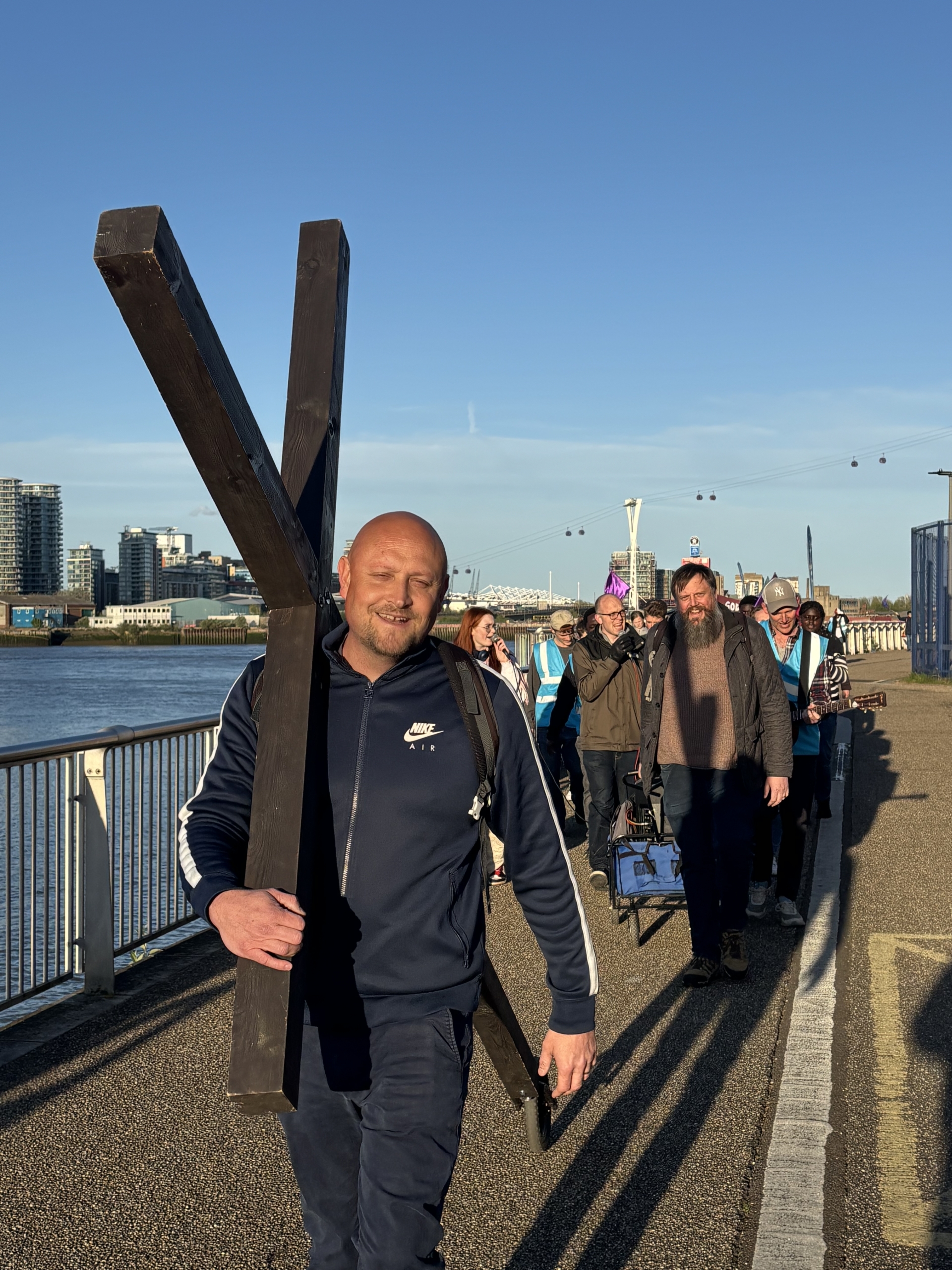 We proclaimed along the South Bank of the River Thames, quite literally making a loud, joyful noise with guitars, drums, bongos, tambourines, trumpets, violins, flutes, flags, banners—voices joined together in unity and the cross carried at the front, leading our procession. This was one of those experiences where “you just had to be there”.